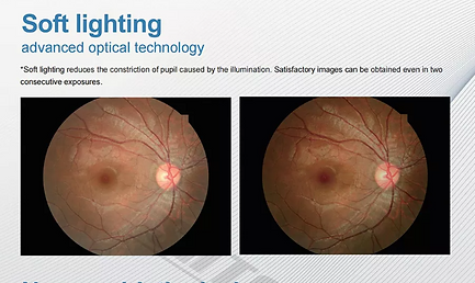 Cuando el profesional requiere hacer tomas específicas de ciertos sectores de la retina, el equipo cuenta con modo manual, en el cual es posible alinear, dar enfoque colocar flash o compensar las dioptrías a través de la pantalla touch (no requiere joystick).